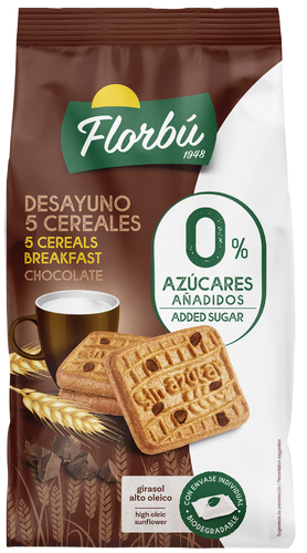 DESAYUNO 5 CEREALES CHOCOLATE 0% AZÚCARES AÑADIDOS.
