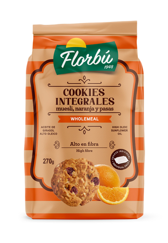 COOKIES INTEGRALES MUESLI, PASAS Y NARANJA.